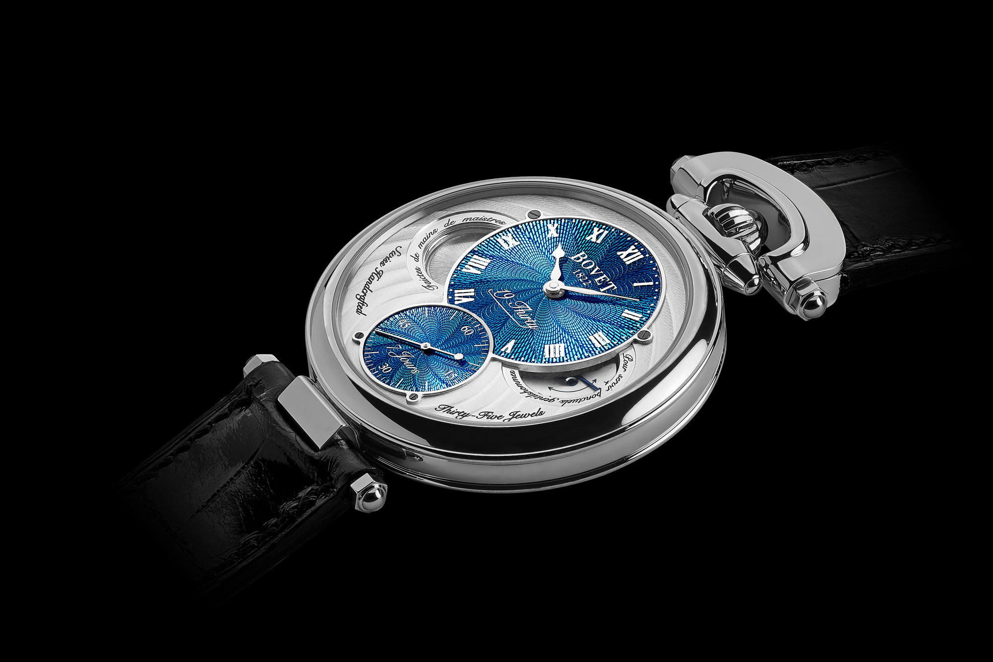 BOVET is able to achieve extraordinary power reserves by using traditional artisanal methods and uncompromising finishes on each and every component. The manufacturing and decoration quality standards for the components are the same as Bovet’s most complicated timepieces. By manufacturing all this timepiece’s components (including the very sensitive tandem balance-spring), BOVET ensures the durable chronometry and reliability that underscore its reputation.